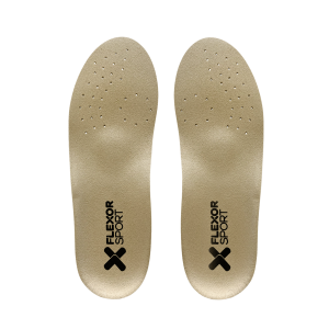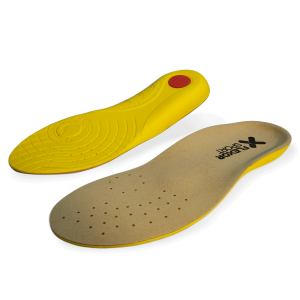 Plantillas técnicas deportivas con amortiguador de impactos y ligera elevación metatarsal.
